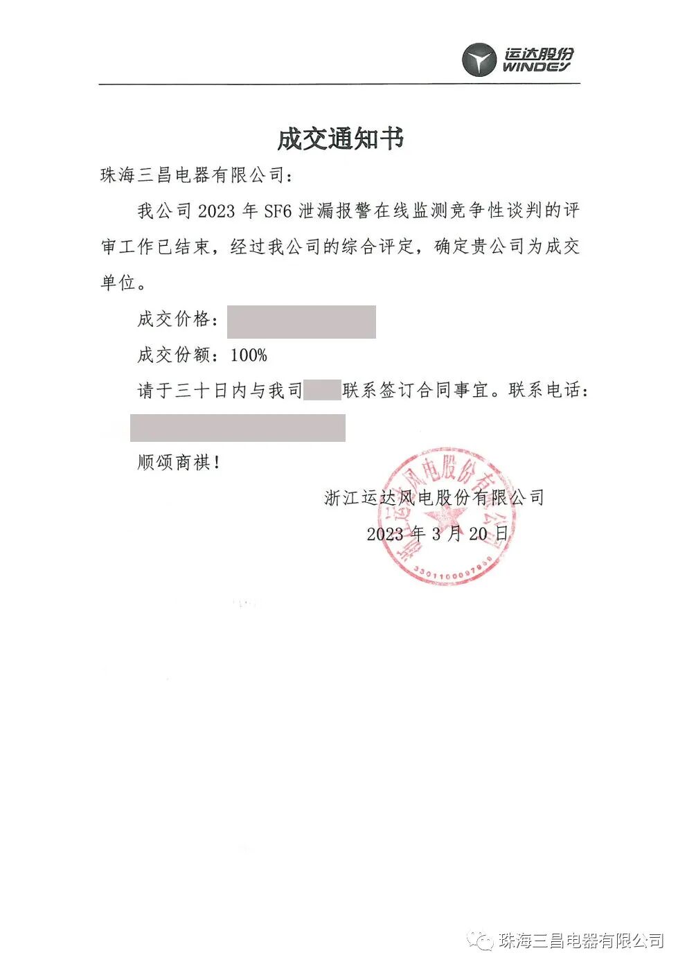 NO2:浙江運(yùn)達(dá)風(fēng)電股份有限公司100套SF6氣體泄漏報(bào)警監(jiān)測系統(tǒng)